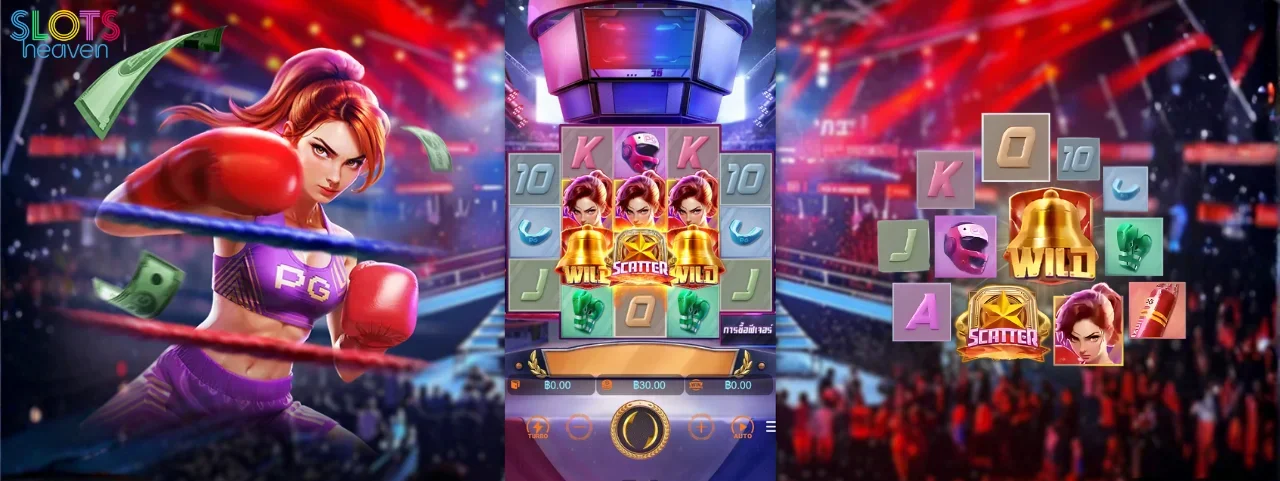 ในส่วนของสัญลักษณ์เกมนั้น ต้องบอกตรง ๆ ว่าไม่ได้หวือหวาหรือมีลูกเล่นโดดเด่นมากเท่าเกมอื่นของค่าย PG เท่าไหร่นัก สัญลักษณ์จ่ายสูงจะเป็นภาพ Ruby นักชกสาว กระสอบทราย เฮดการ์ด และนวม ซึ่งแม้จะเข้ากับธีมแต่ก็ดูเป็นรูปแบบค่อนข้างมาตรฐาน ส่วนสัญลักษณ์จ่ายต่ำคือกลุ่มตัวอักษร J, Q, K, A และตัวเลข 10 ที่พบได้ทั่วไปในเกมสล็อตหลายเกม ทำให้ภาพรวมของชุดสัญลักษณ์ในเกมนี้อาจไม่ได้ว้าวเป็นพิเศษ แต่ข้อดีคือดูง่าย เข้าใจไว เหมาะกับผู้เล่นที่อยากโฟกัสการทำคอมโบผ่านระบบ Collapsing Reels มากกว่าจะมานั่งจำสัญลักษณ์เยอะ ๆ เพราะสุดท้ายสิ่งที่เด่นจริง ๆ ของเกมนี้คือระบบ Ways และชุดคอมโบที่ลุ้นหนักมากกว่า